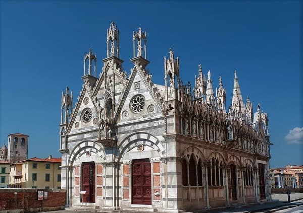 - Главные достопримечательности — Соборная площадь (Собор, Баптистерий, Башня), огромный средневековый центр, набережные Арно, арсеналы (верфи) республики и Медичи, площадь Кавалеров св. Стефана, романские и готические церкви.